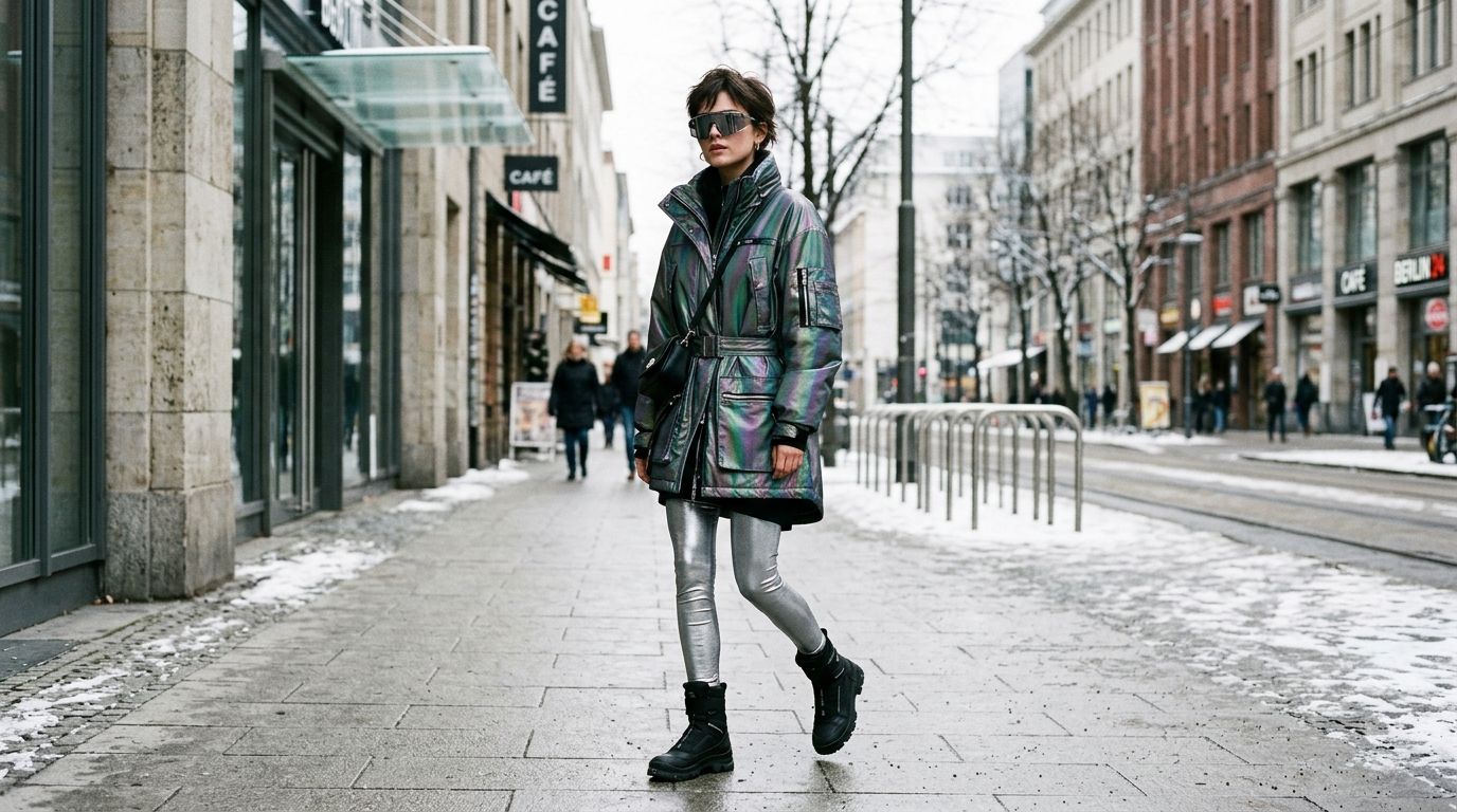 Le secret pour réussir ton look ? Le contraste de textures. Mélange la froideur du nylon irisé avec la douceur d’un pull en mohair ou la transparence d’un top en mesh technique. L’objectif est de créer un visuel riche qui attire l'œil tout en restant fidèle à l'esprit "survie chic". N’hésite pas à accessoiriser avec des lunettes de soleil masque, presque futuristes, pour parfaire cette silhouette de guerrière des neiges. C’est le moment idéal pour sortir tes plus grosses bottes de neige, celles que tu gardais pour les vacances aux sports d’hiver, et de les intégrer à ton quotidien citadin.